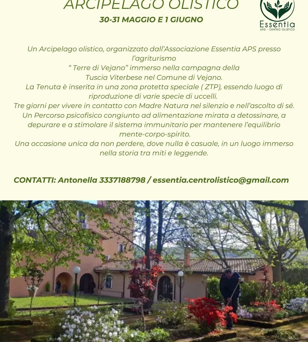 Un Arcipelago olistico, organizzato dall’Associazione Essentia APS presso l’agriturismo “Terre di Vejano” immerso nella campagna della Tuscia Viterbese nel Comune di Vejano.